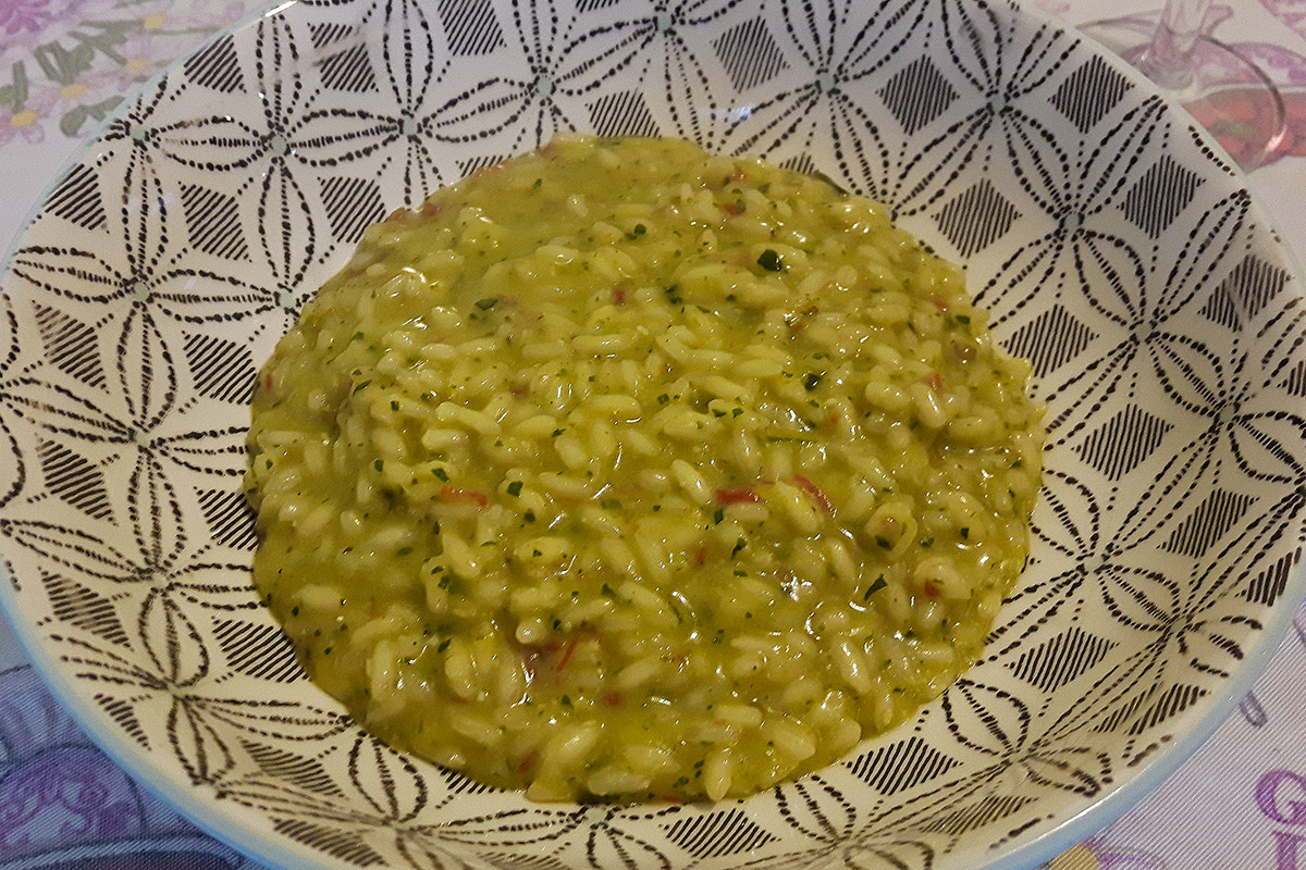 Risotto con pesto di aglio orsino e pomodori secchi