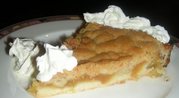 150 g di farina, 175 g di zucchero, 6 mele (meglio della varieta’ Annurca), 2 bastoncini di cannella, 4 chiodi di garofano, 5 semi di anice stellato, un limone non trattato, un bicchierino di cognac, 200 ml di panna fresca, 100 ml di yogurt, 2 cucchiai di zucchero a velo, 100 g d burro, sale.