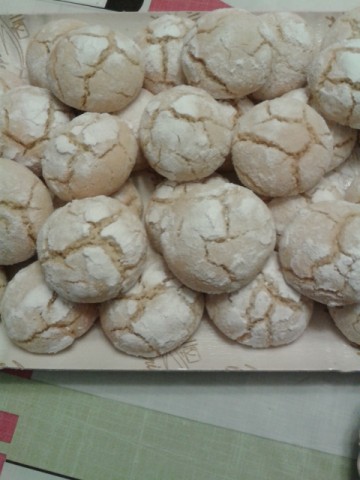 Formare delle palline e appiattirle leggermente e collocarci al centro una mandorla intera.