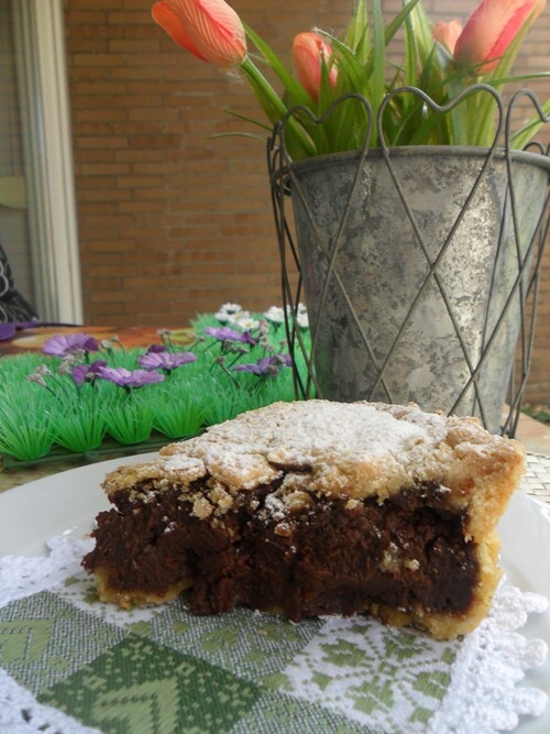 Foderare uno stampo di circa 22 cm con uno strato di pasta riempirlo col la farcia di cioccolato e mandorle e ricoprire con un altro strato di pasta .Infornare per circa 30 min a 180°C.