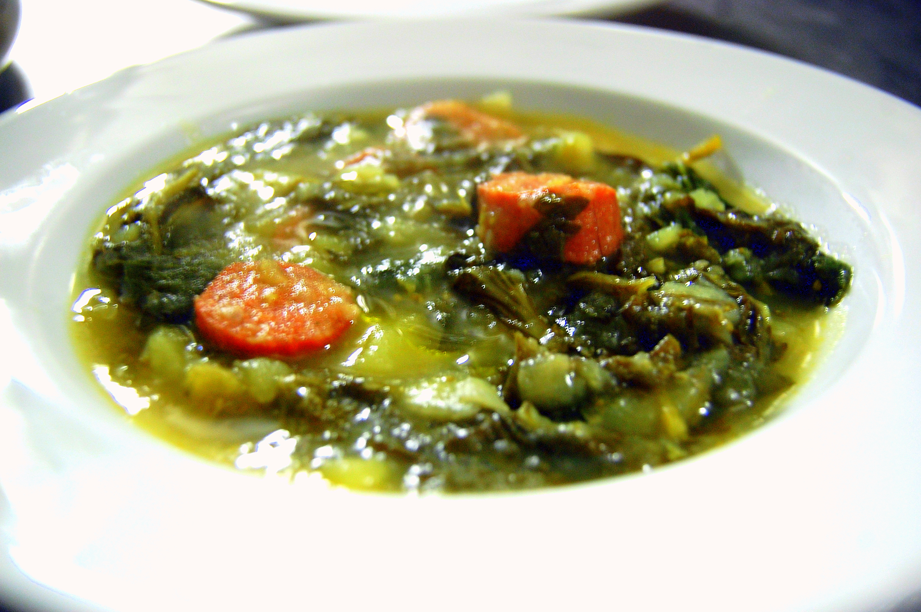 IIl caldo verde è una minestra di una regione che si trova al confine tra il Portogallo e la Spagna. Per questo motivo include tra gli ingredienti il chorizo.