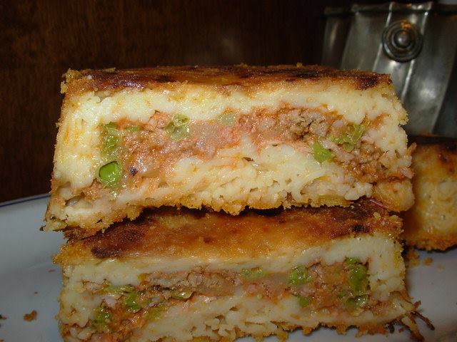 Gaudia ha scritto:Ecco il mio timballo di capellini: 1 kg. di capellini (io uso quelli Barilla),100 gr. di burro,100 gr. di parmigiano grattuggiato, 1 uovo+1 tuorlo, 1/2 lt di bechamella + 3/4 di lt, 750 gr. di carne macinata, sedano, carota, cipolla, dado di carne,100 gr. di prosciutto cotto, 80 gr.di emmental, 80 gr.di provola dolce,80 gr.di fontina,500 gr. di pisellini fini, pangrattato,olio,sale e pepe.