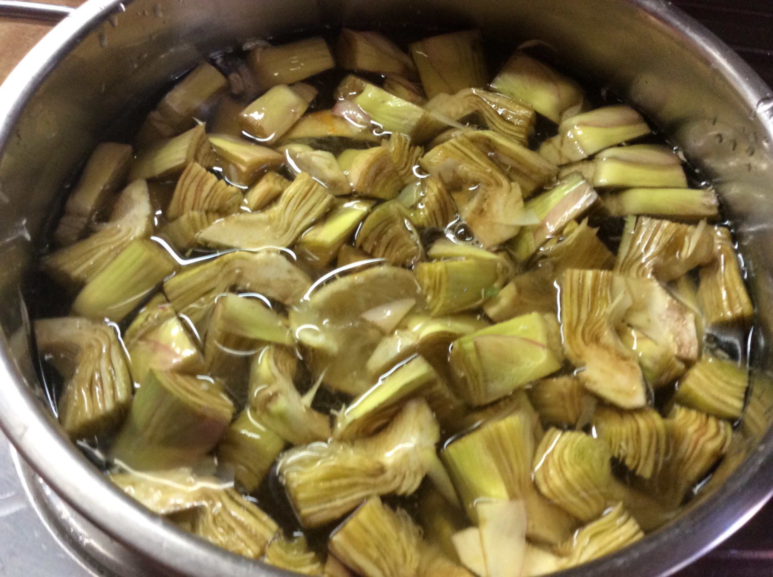 ho dimenticato di aggiungere che i carciofi vanno tagliati in quattro o in sei, dipende dalla grandezza