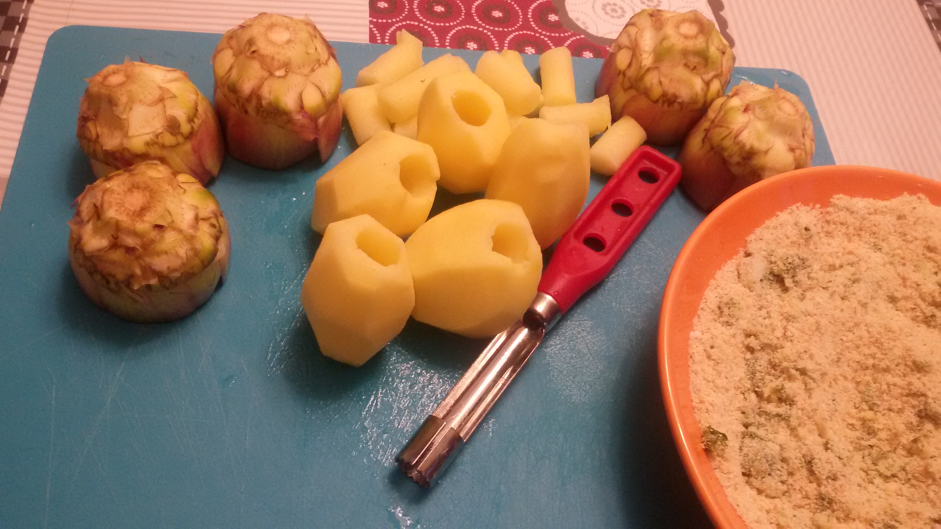 Le patate, che sono più durette, riescono a cuocere nello stesso tempo dei carciofi