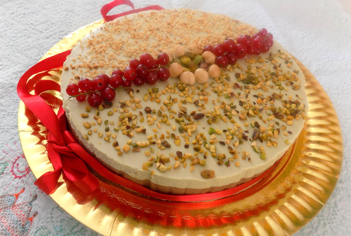 Ho decorato con granella di nocciole e di pistacchi. E un po' di ribes, che abbonda , per dar colore.