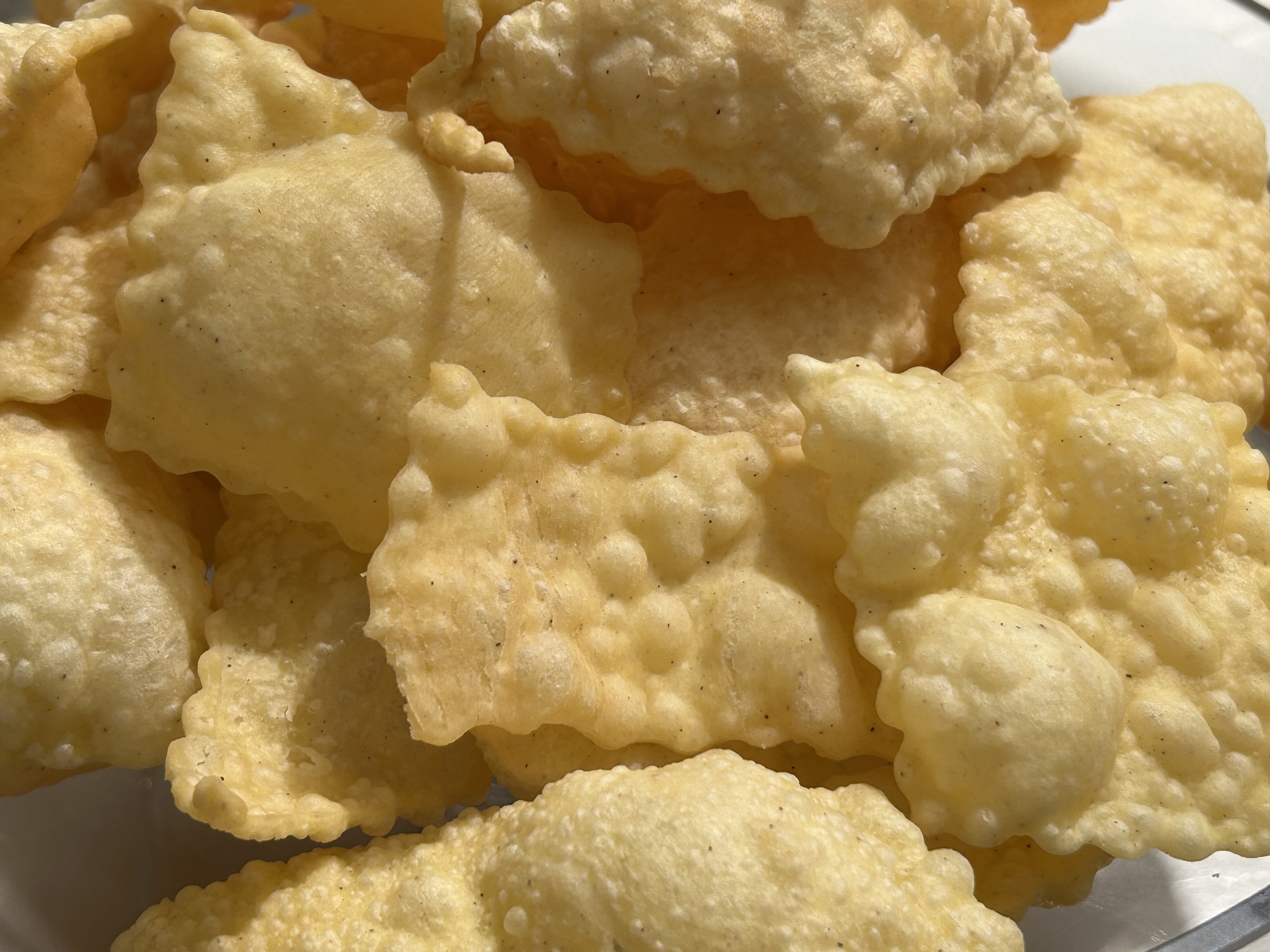 - Friggere poche chiacchiere alla volta in olio a 160–170°C.