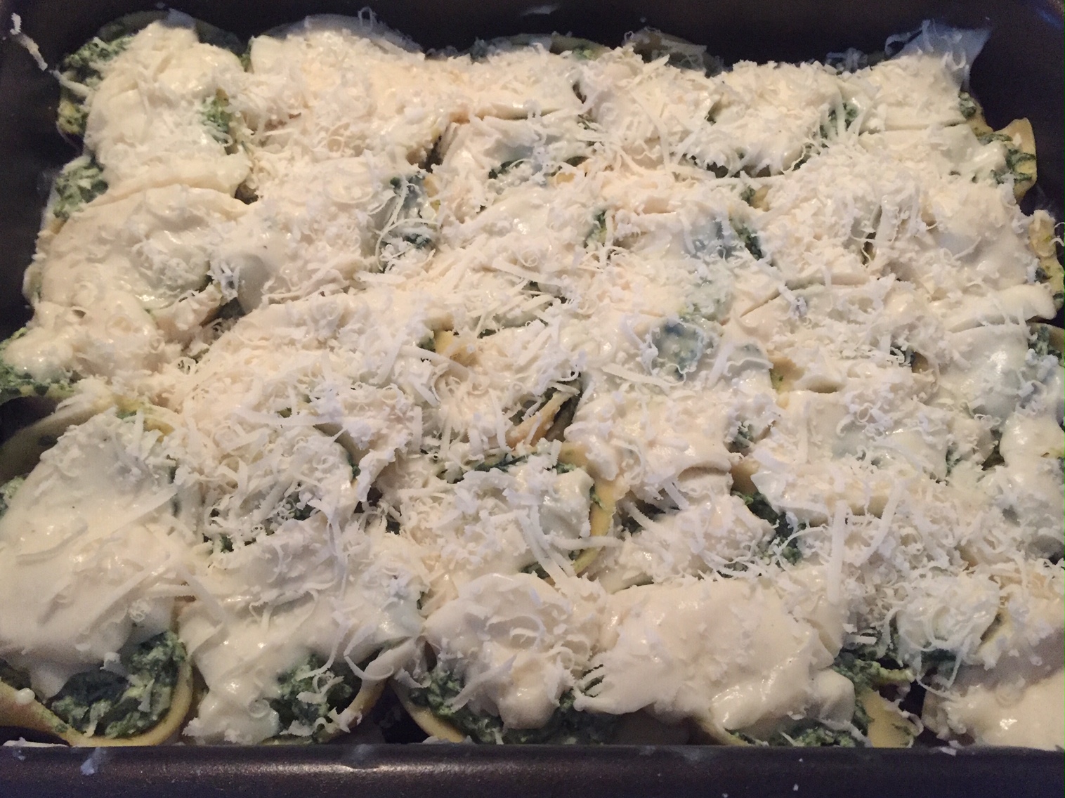 - Riempire i conchiglioni con il composto e disporli nella teglia.