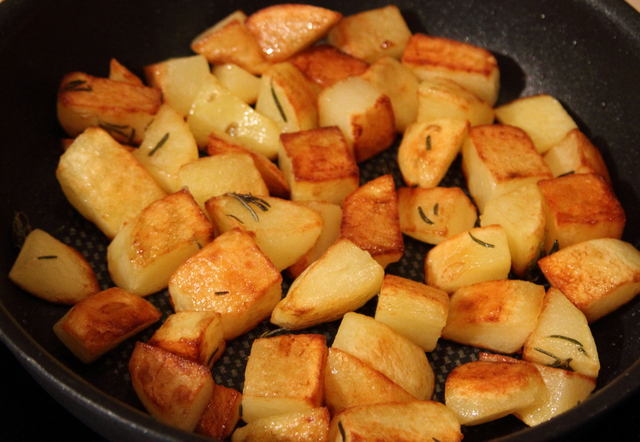 Poi per chi non è a dieta patate, saltate in padella con rosmarino.
