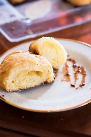Dorarli con l’uovo sbattuto e spolverarli con zucchero semolato.