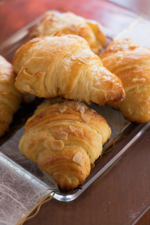 A questo avete due scelte: posizionare i croissant su teglie rivestite da carta forno e lasciar lievitare finché raddoppino di volume (due o tre ore a seconda del freddo che fa!), oppure congelare i croissant ottenuti e utilizzarli successivamente. Se li congelate, ricordatevi di toglierli fuori dal freezer 6 ore prima di cuocerli.