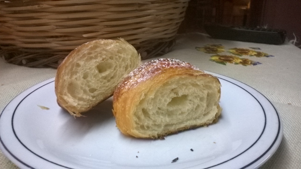 Ho trovato una pagina interessante su questo blog un'impasto di croissant dove non c'è la presenza delle uova,( una cosa l'ho capito, il croissant Francese non ha uova nell'impasto) come nella ricetta provata in precedenza QUI!