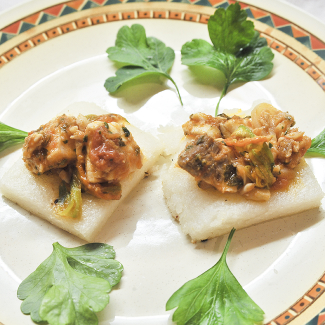 3) Dispongo il ragout sui crostini e l'antipasto è pronto!