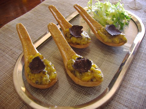 Cucchiaini salati con uova strapazzate al tartufo