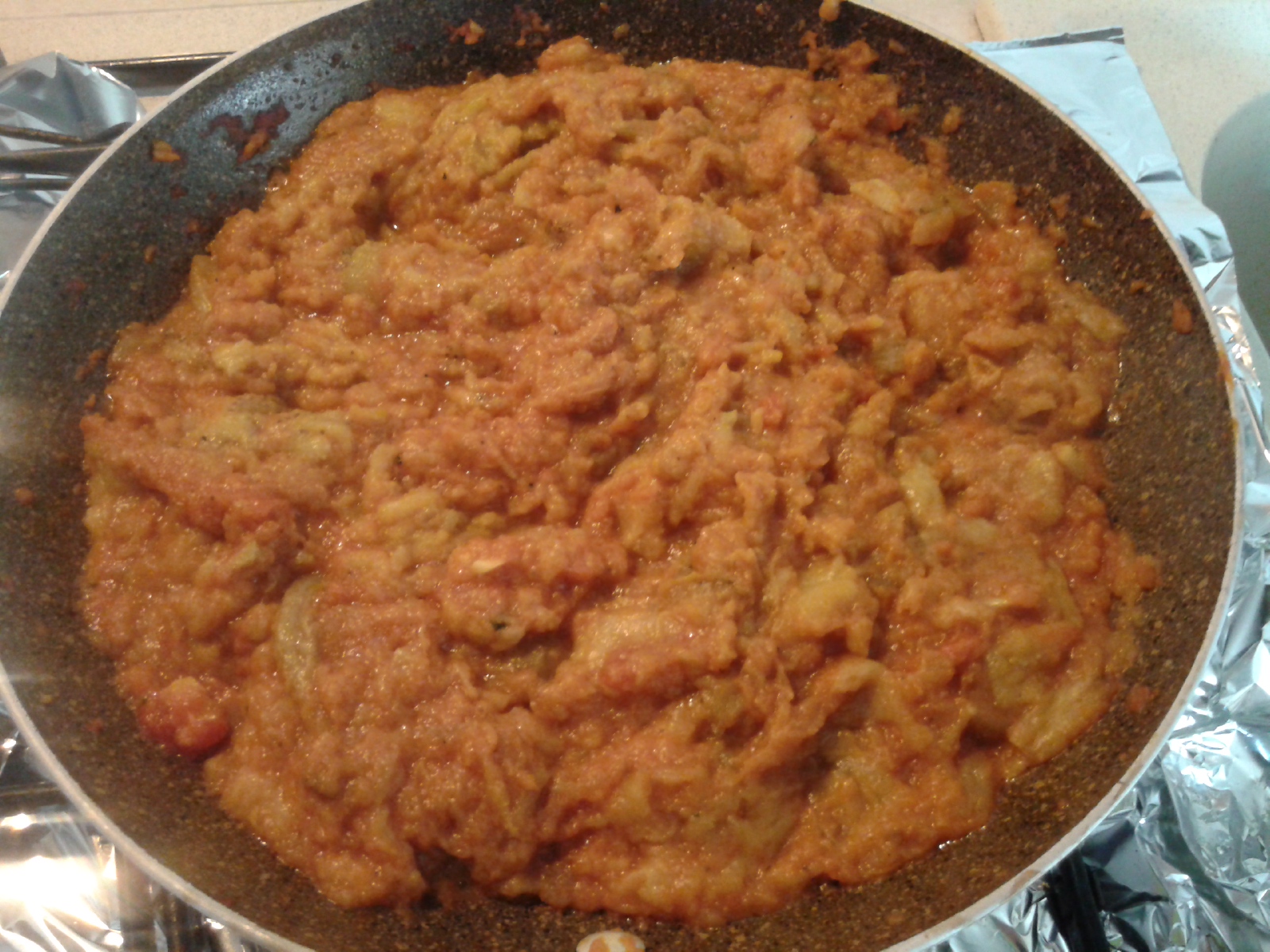 Mentre le melanzane si insaporiscono, con un cucchiaio di legno o una forchetta o un pestello di legno, schiacciarle bene in modo che cuocendo diventino una crema. (