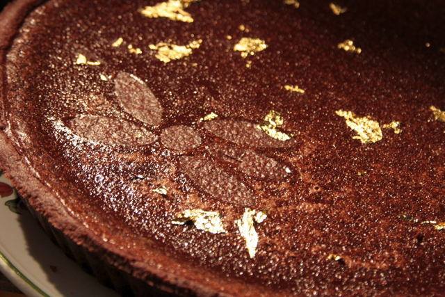 Riprendere la frolla, stenderla sull'asse infarinato leggermente ad un'altezza di pochi mm. Rivestire lo stampo con cura. Versare la crema dentro il guscio di frolla e cuocere per circa 35 minuti. Volendo, si possono appoggiare sulla farcia delle piccole decorazioni di pasta frolla.