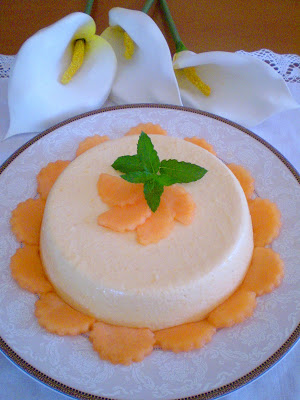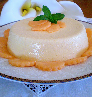 Prima di servire porre lo stampo per pochi secondi nell'acqua calda, capovolgere nel piatto di portata e decorare a piacere con fettine di melone e un ciuffetto di menta.