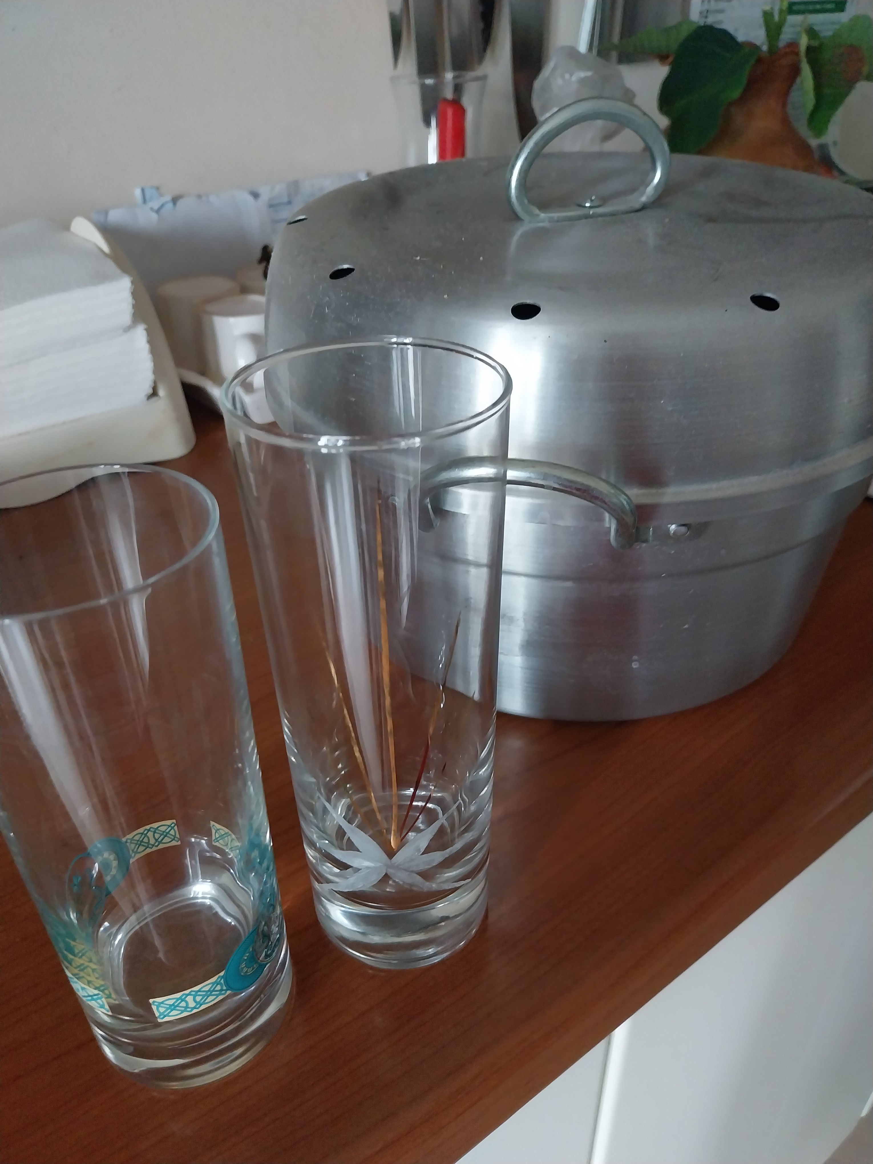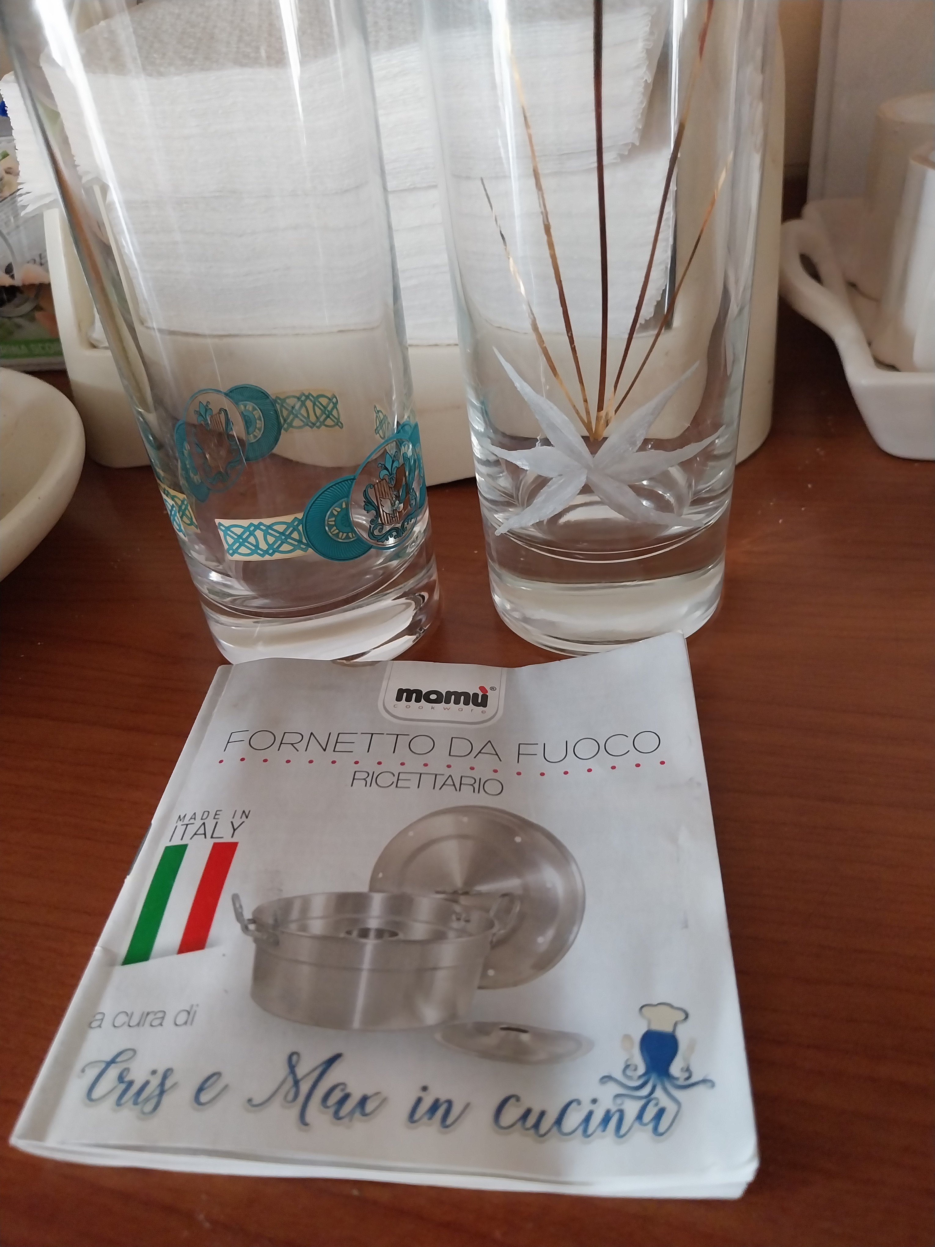 Ho lo stesso fornetto eredità di mia mamma ma non l'ho mai usato,i bicchieri sono molto belli . Io ho notato che si opacizzano mettendoli in lavastoviglie. Alcune volte un goccino di anticalcare può aiutare.