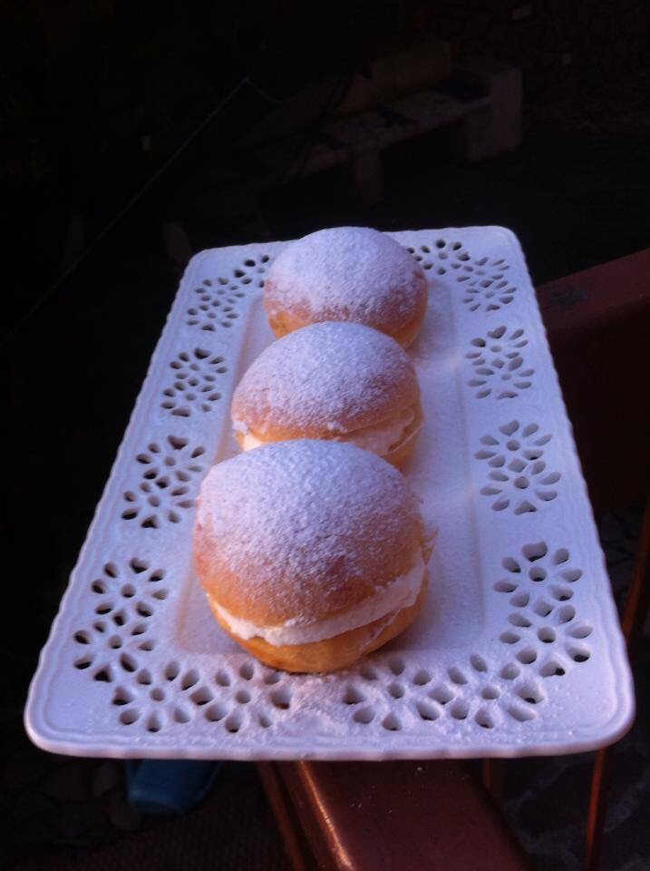 E' farcito con una delicata crema/mousse alla ricotta,panna e crema pasticceria.