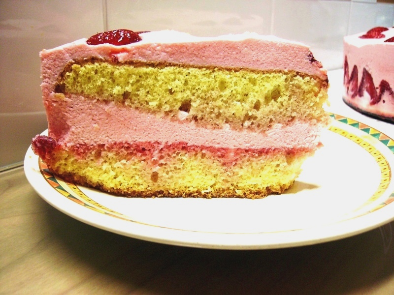 Ricetta di Pinella: L'idea del fraisier l'ho presa in questo bellissimo blog. E' cosi colorato e primaverile che ci sta bene da matti in questa soleggiatissima giornata. Si, non è ancora tempo di fragole ma è certamente un dolce da tenere in un angolo della memoria per poi fargli prendere corpo al momento opportuno. Intanto... Ah! Naturalmente, un po' di suggerimenti li ho presi dal maestro Santin, come spesso mi accade.. Pasta genovese (tratta dal Larousse dei Desserts)
