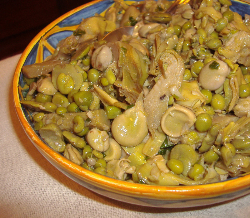Piatto primaverile tipico siciliano a base di fave, piselli e carciofi. Ottimo come contorno, minestra o condimento per la pasta, anche con l'aggiunta di caciocavallo o ricotta fresca.