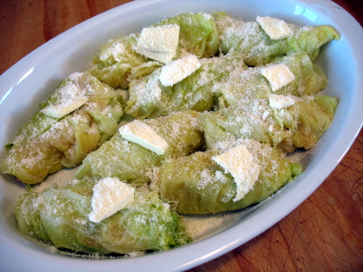 cospargere con grana grattuggiatoe fiocchetti di burro.