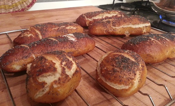 A questo punto immergere pochi panini alla volta, 4 o 5, scolarli dopo 30 secondi, e man mano poggiarli poi direttamente sulla placca del forno coperta di carta forno. Spolverare subito con sale grosso, semi di sesamo, cumino o papavero, e accendere il forno a circa 210°.