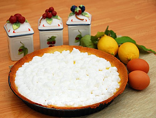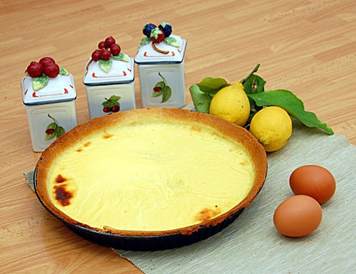 - Preparare una pasta brisèe con la scorza di mezzo limone grattugiata, stenderla in uno stampo da pie imburrato e metterla in frigorifero per circa 30 minuti.