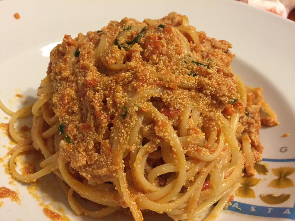 Linguine con pomodorino, uova di pesce spada e menta fresca tritata