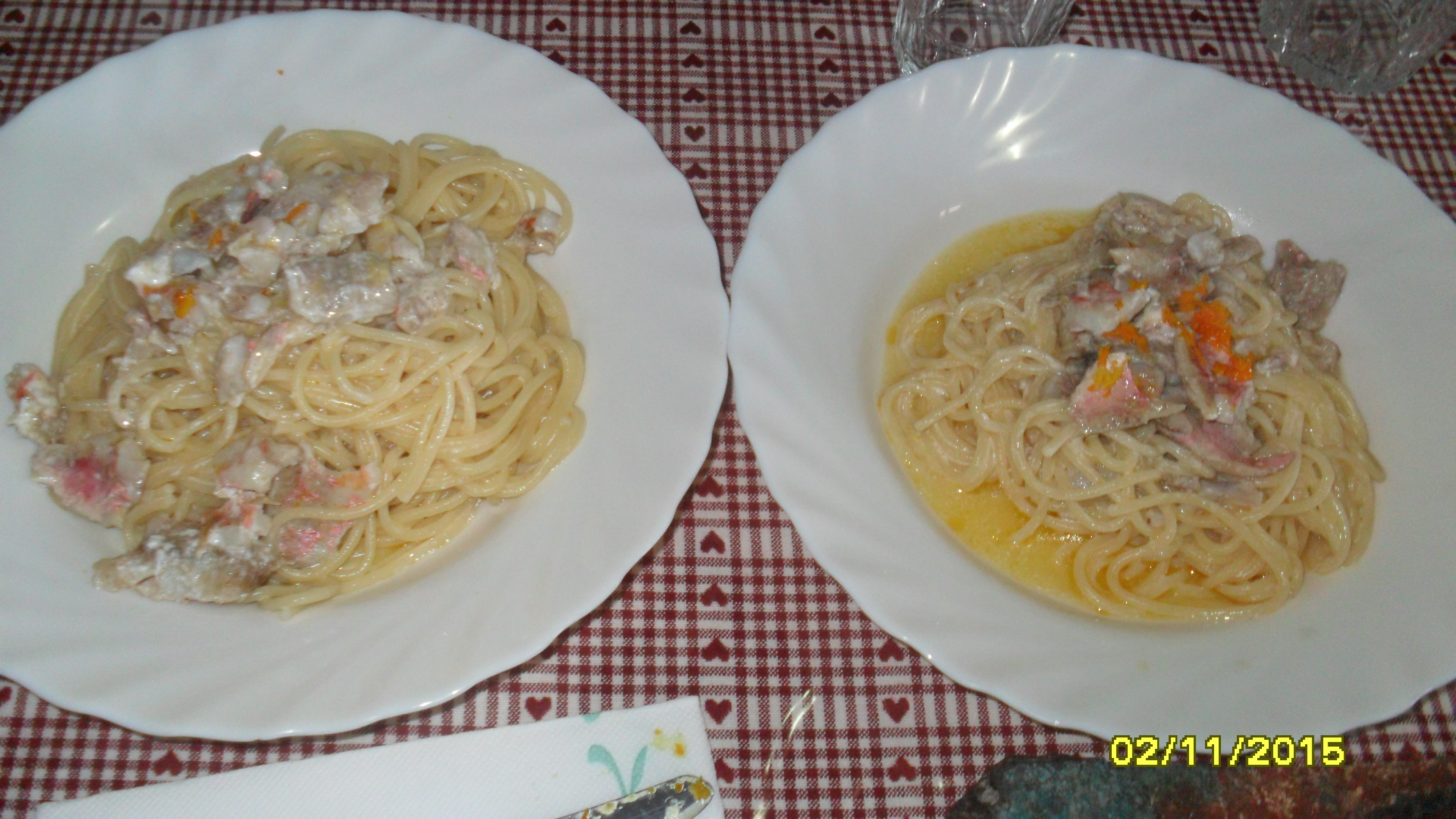 avevo dimenticato di conservare teste e lische, ieri e buttate, ho messo succo e scorza di aranciagrattugiata , e' venuto un sughetto molto delicato e saporito , appena posso metto la foto