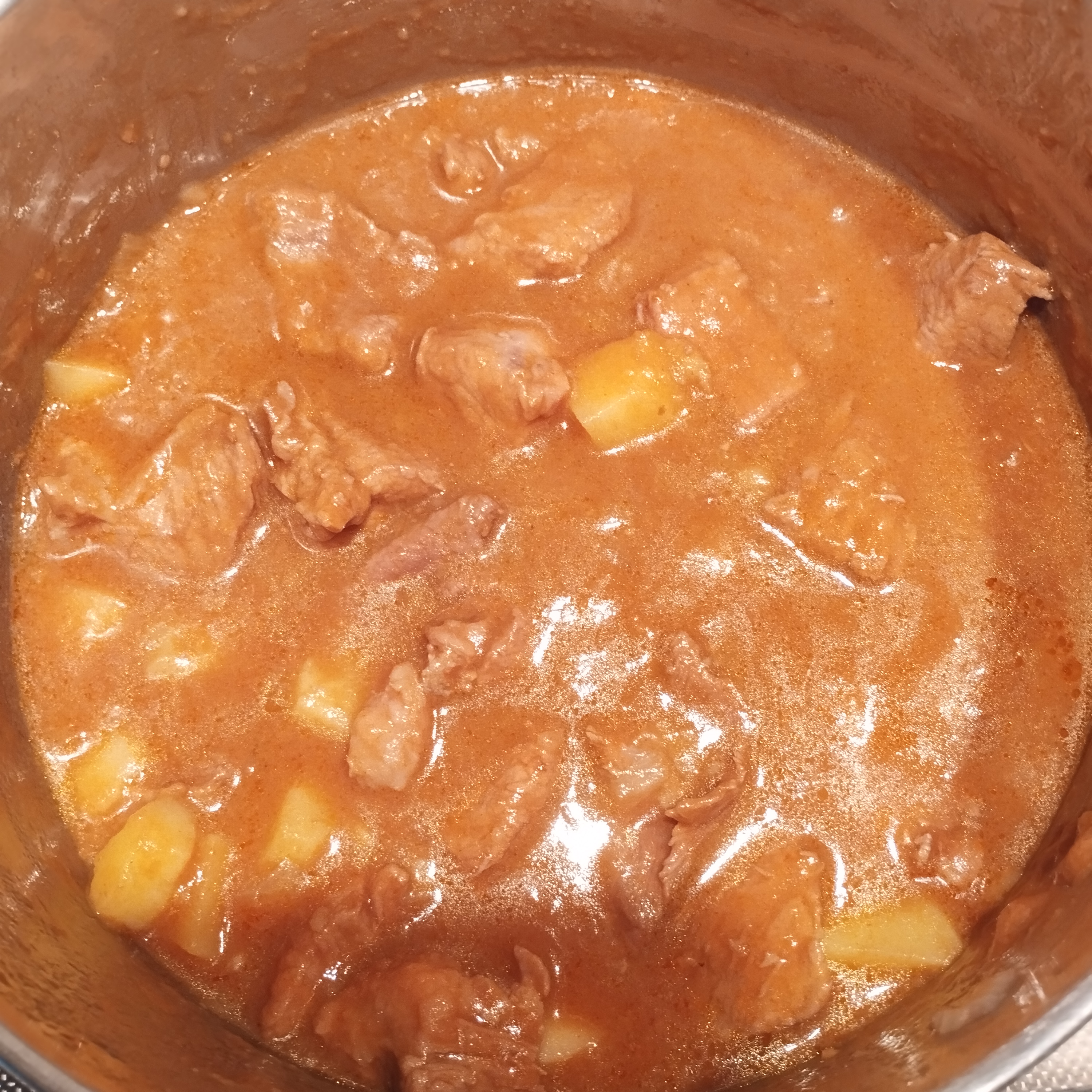 Oggi ho preparato un piatto Canaro, spezzatino di maiale con tante cipolle, patate e vino rosso. La particolarita' sta nel fatto che la carne viene impanata in farina e pimiento dulce. Ci mette tanto a cuocere ma viene un piatto delizioso. La cipolla si scioglie e crea una cremina da "pucciare" con il pane. Franco mi ha fatto i complimenti e mi ha suggerito di provare ad aggiungere, la prossima volta che lo cucinero', un poco di pimiento piccante e del cumino.