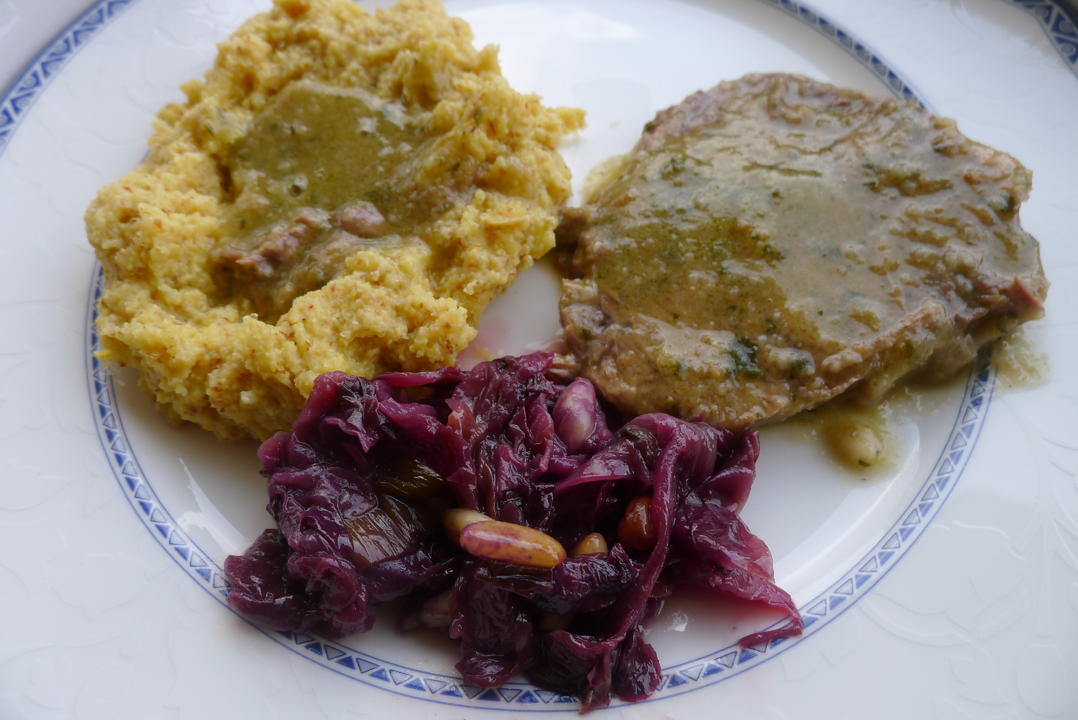 Riscaldare al momento e servire con una buona polenta. Ho usato la polenta di Storo cotta per 40 minuti con rapporto 1 a 5 con l’acqua.