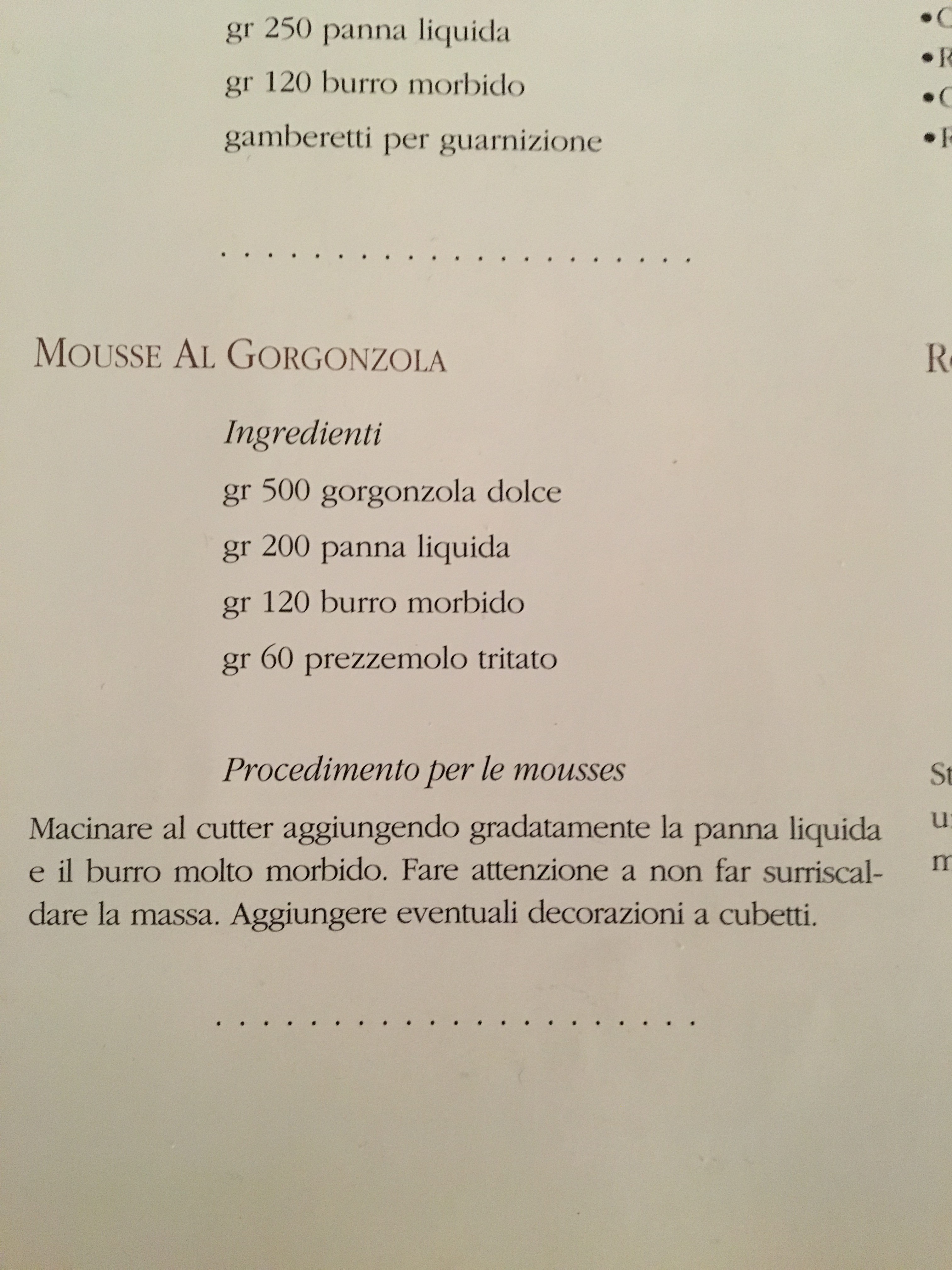 Patriziaf ha scritto:Io la mousse al gorgonzola la farei frullando il gorgonzola a cui aggiungerei un po di mascarpone e panna montata non zuccherata.