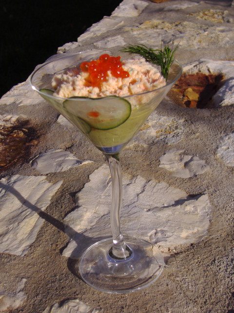 nel mixer 150 gr di salmone affumicato con il philadelphia, aggiungere il succo di limone, il pepe rosa e poi la panna semimontata.Mettere in una coppa foderata di pellicola trasparente e porre in frigo.Sformare e guarnire con listarelle di salmone affumicato e fettine di limone e di cetriolo e insalatine miste.Servire con fettine di baguette appena unte e tostate in forno....semplicissima e buonissima....L'idea me l'ha data la Sandra che ringrazio!