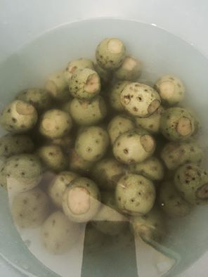 Fatte un piccolo taglio alla punta per poi inserire le mandorle in un secondo momento. Quindi metterle in acqua fredda, coprite con un piatto, cosi restano immerse nel acqua. Dovranno restare cosi per 8-10 giorni. Cambiare l'acqua ogni giorno.