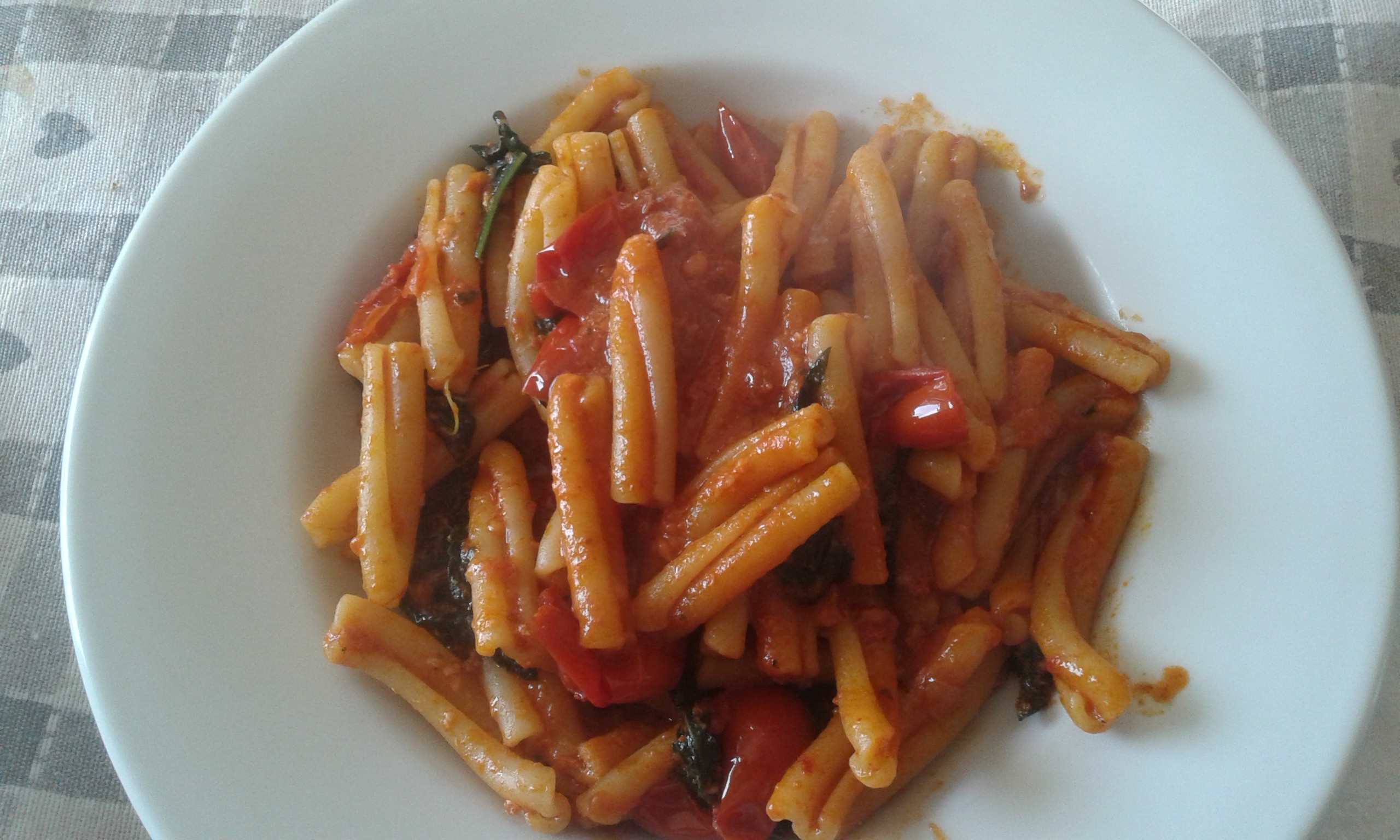 Nel frattempo, scolate paccheri e cavolo a circa 3-4 minuti prima di fine cottura e far saltare in padella insieme al Pomodoro e ndujia. Grattugiare del pecorino, far insaporire e servire.