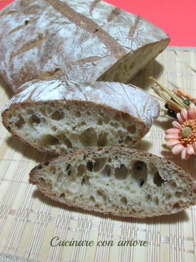 * Se volete utilizzare pasta madre solida idratata al 50% 135 g e 455 g di farina ( 255 g di farina 0 e 200 g di farro )