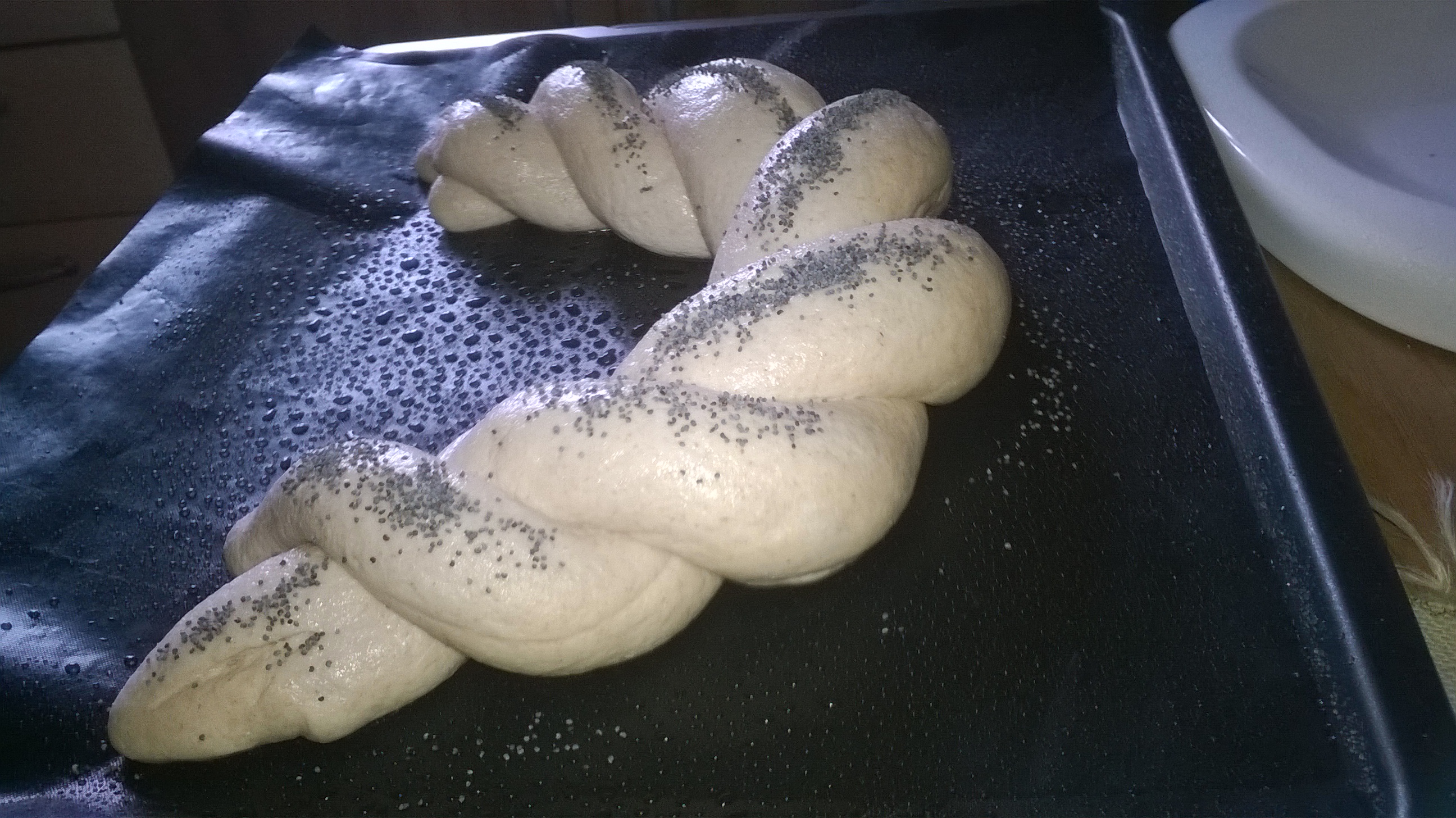 Ore 17,45, nebulizzare il pastone e spargere dei semi di papavero,( nella ricetta parlavano di pennellare con uovo sbattuto) infornare a 220° per i primi 15', abbassare a 200' per i restanti 15'.
