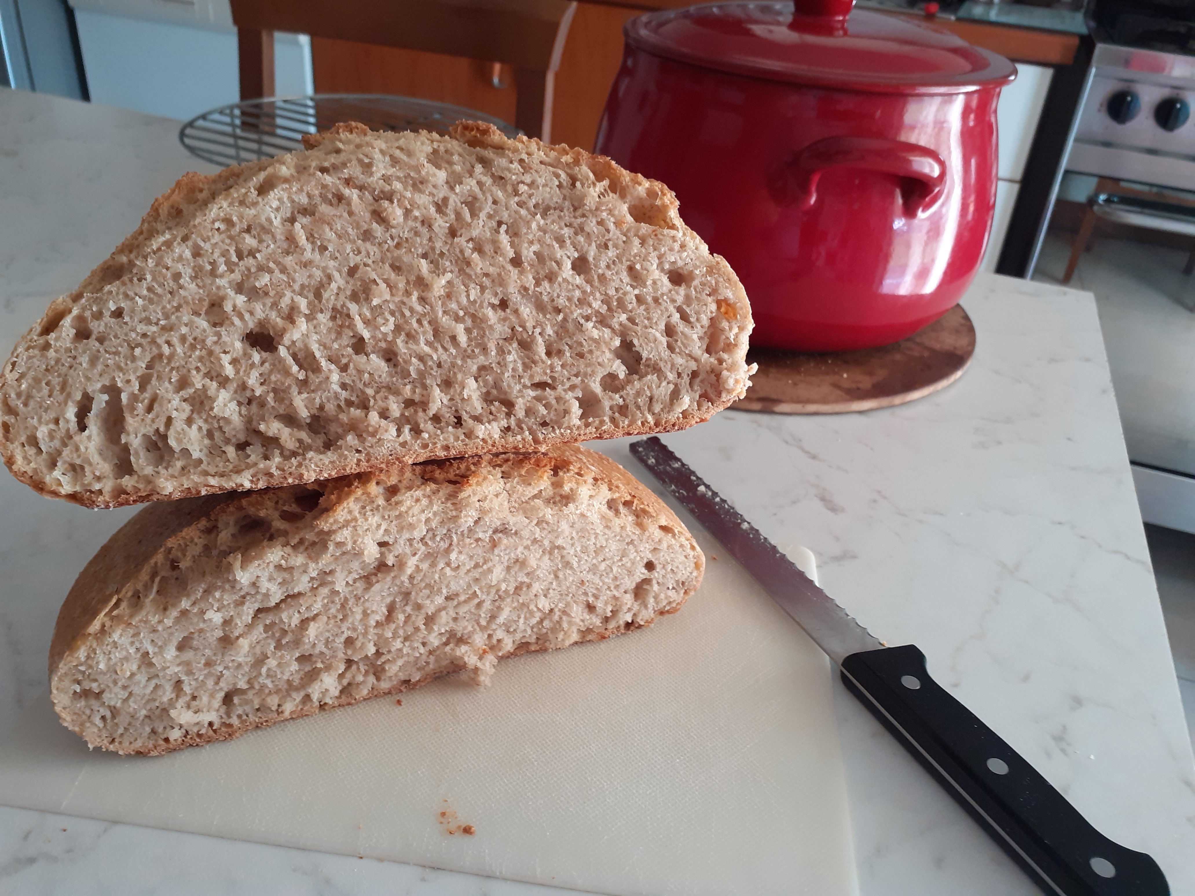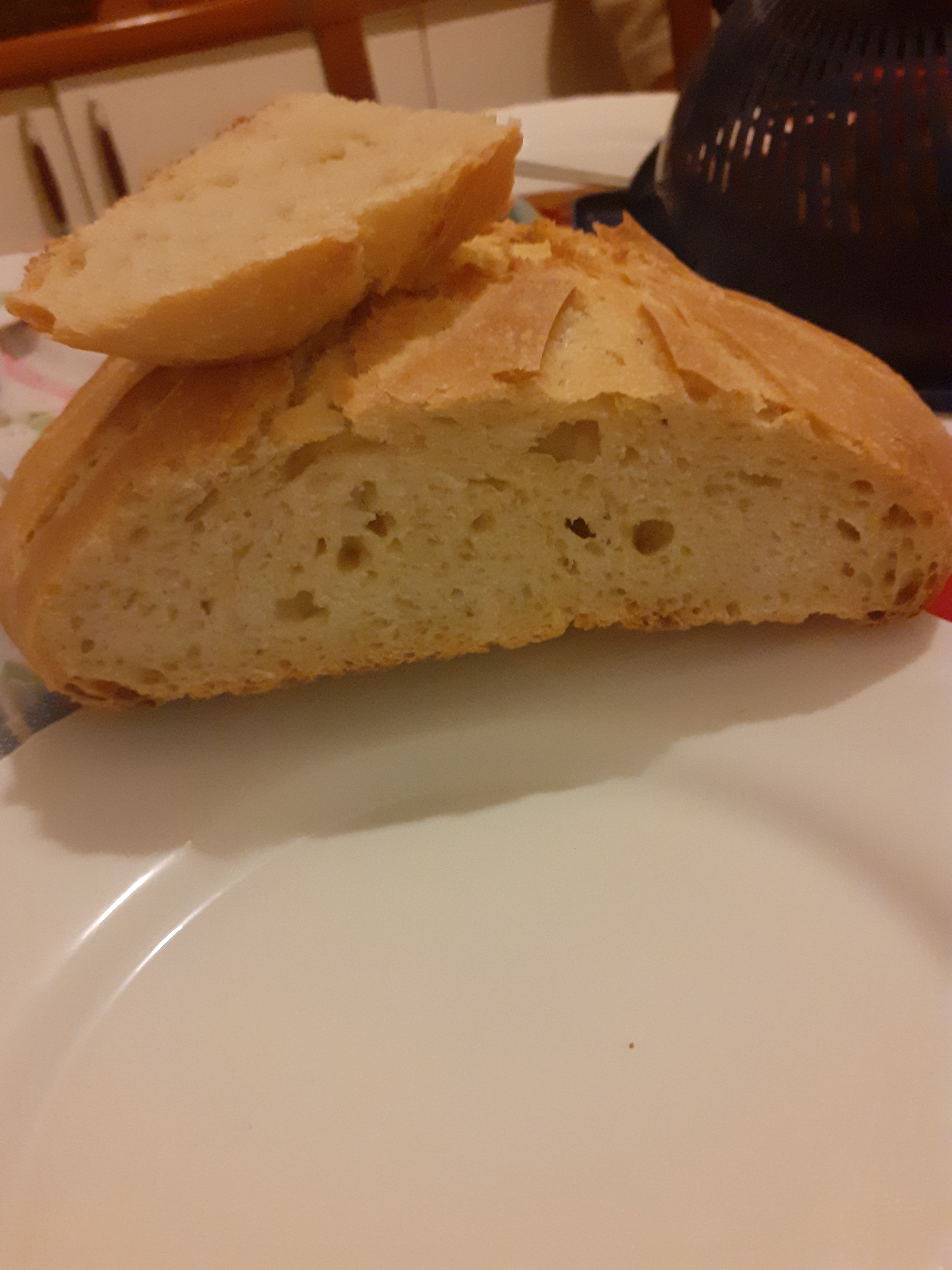 , vi posto il risultato di stasera ottenuto sperimentando per la prima volta il metodo no-knead (tra l'altro conoscendolo pochissimo!) e inventando un po le dosi.Vi illustro a grandi linee com'è andata la storia: