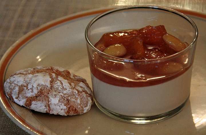Mettere in frigorifero e servire come piu' vi piace.Io ho trovato che la composta di pesche e mandorle che avevo fatto e congelato con una spruzzatina di cannella era perfetta:-)