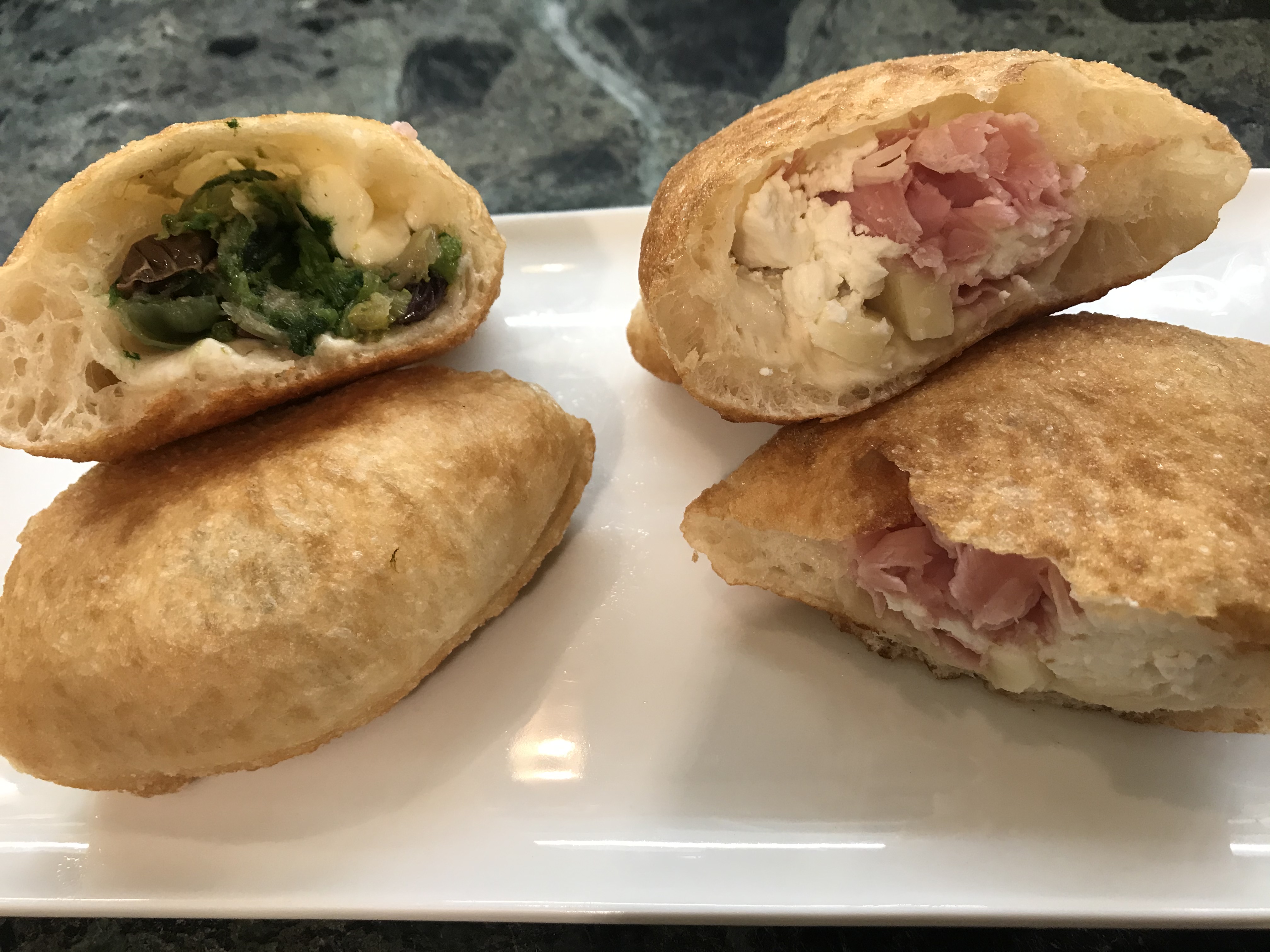 ripieno prosciutto e mozzarella per me e mozzarella pomodori e origano per mio marito.....