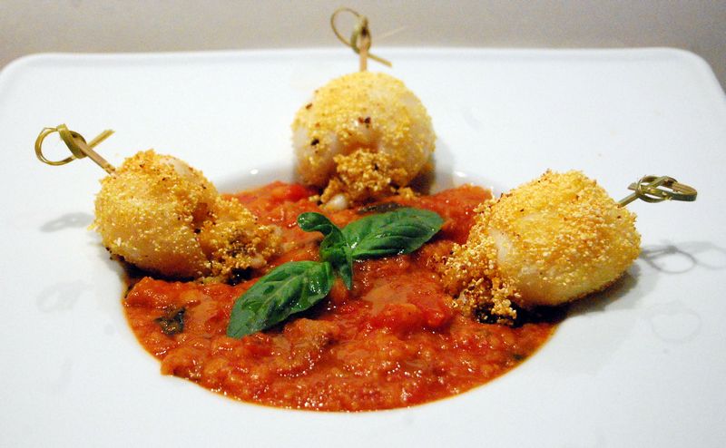 di aggiungervi delle seppie fritte o anche dei calamaretti a spillo, sempre fritti e poi infilzati da lunghi
