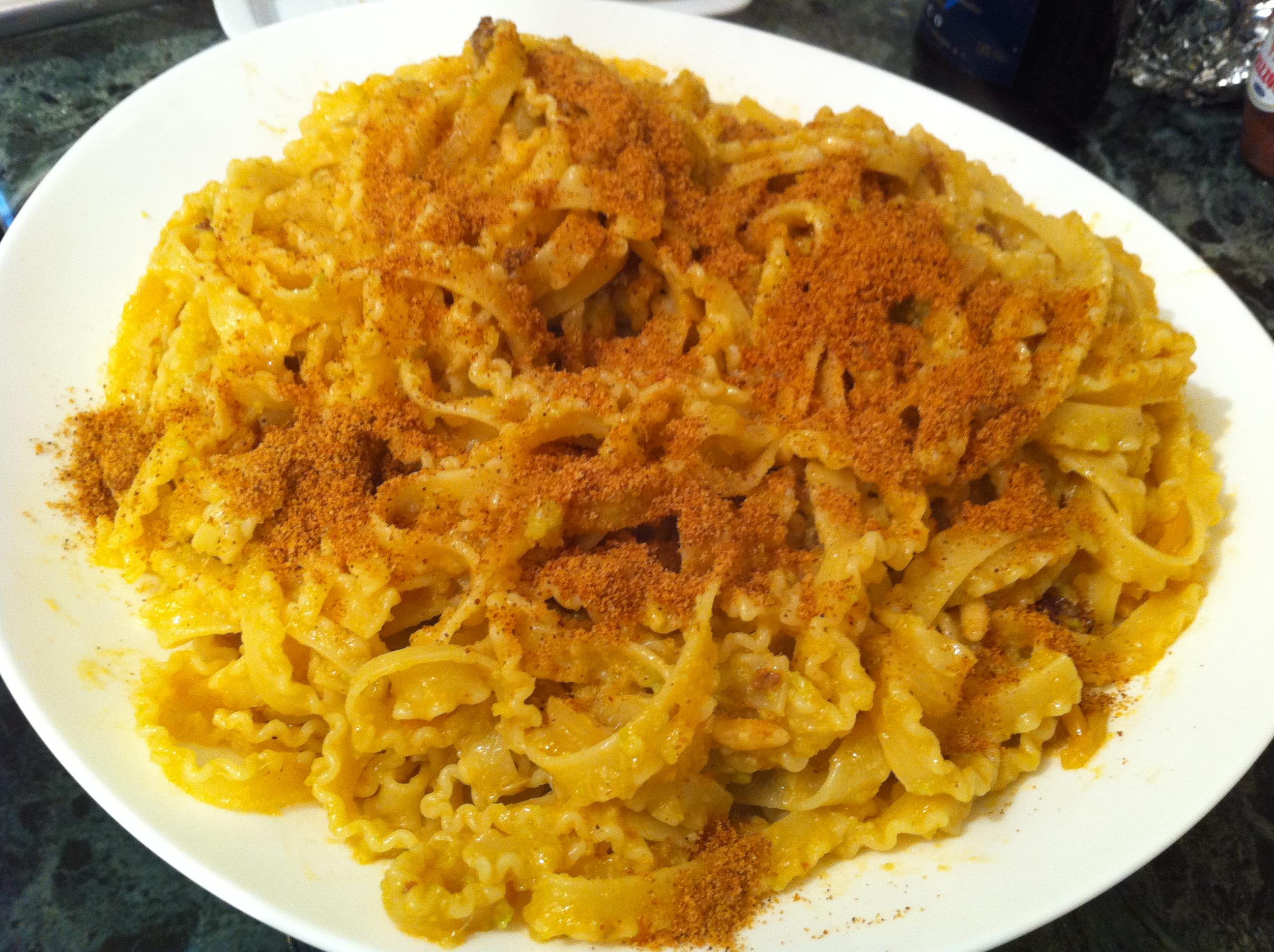 Condire la pasta cotta al dente lasciandola riposare un pò prima di servirla a tavola.