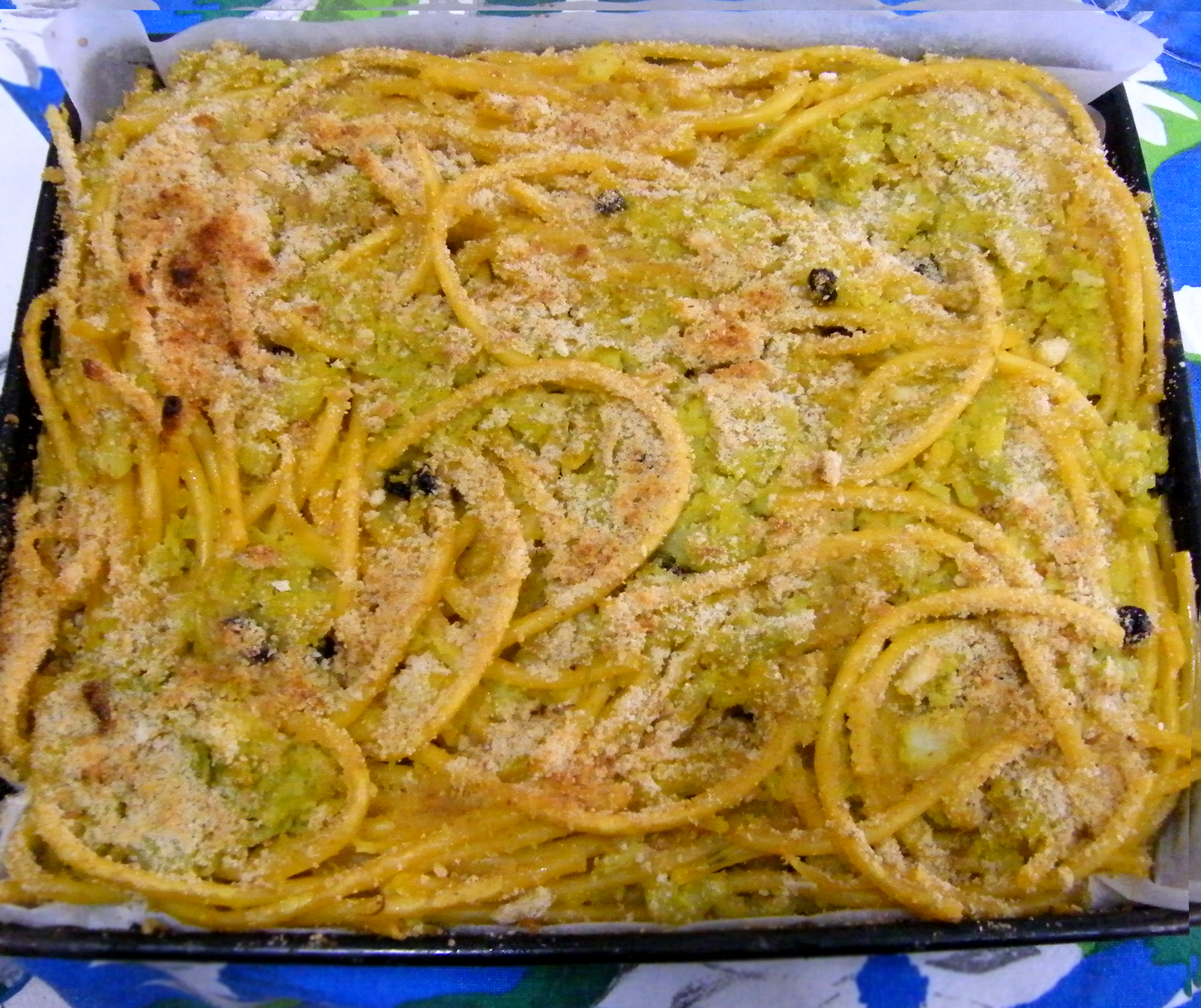 Questa è la ricetta classica, oppure rivestite una teglia con mollica atturrata, versate la pasta condita in teglia, ricoprire anche sopra di pangrattato, un filo d'olio e infornare finchè la superficie diventa croccante, anche in questo caso la pasta dovrà riposare.