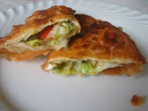 Dividete la pasta in pallette e stendetela col mattarello per ottenere dei dischi ( io che sono "incapace" ho steso e poi ritagliato mettendo sopra la pasta stesa un piattino da frutta....) grandi come un piattino da frutta.Mettete su ogni disco un po' di scarola condita, dadini di pomodorino, pezzetti di acciuga e pezzetti di formaggio.Ripiegate a metà e sigillate premendo i bordi.Friggete in olio abbondante.....