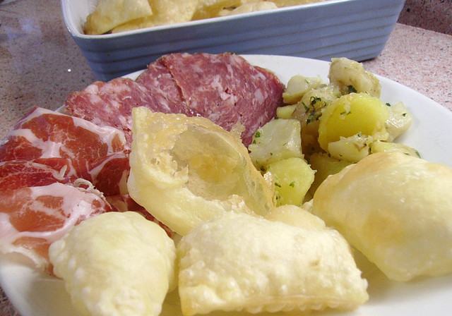 Oggi li ho serviti con coppa di testa, mortadella, zia ferrarese e crescenza, accompagnando il tutto con patate e topinambur saltati in padella con aglio e un pizzico di prezzemolo.