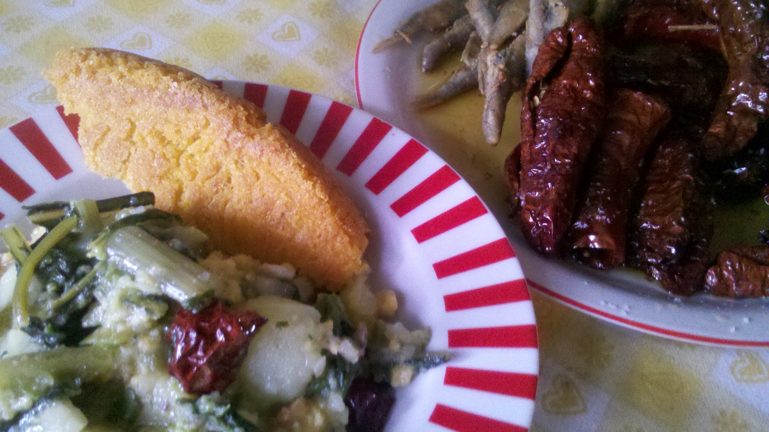 ) era macinata dal mulino alla piana di Casoli...Un mulino ad acqua, con le macine in pietra, perchè a quei tempi i contadini portavano i propri cereali che venivano trasformati in farinacei per la loro cucina e gli animali da cortile...2-3 Kg di verdure di misticanza di campo: sedano, verza, cicoria, patate,bieta, etc