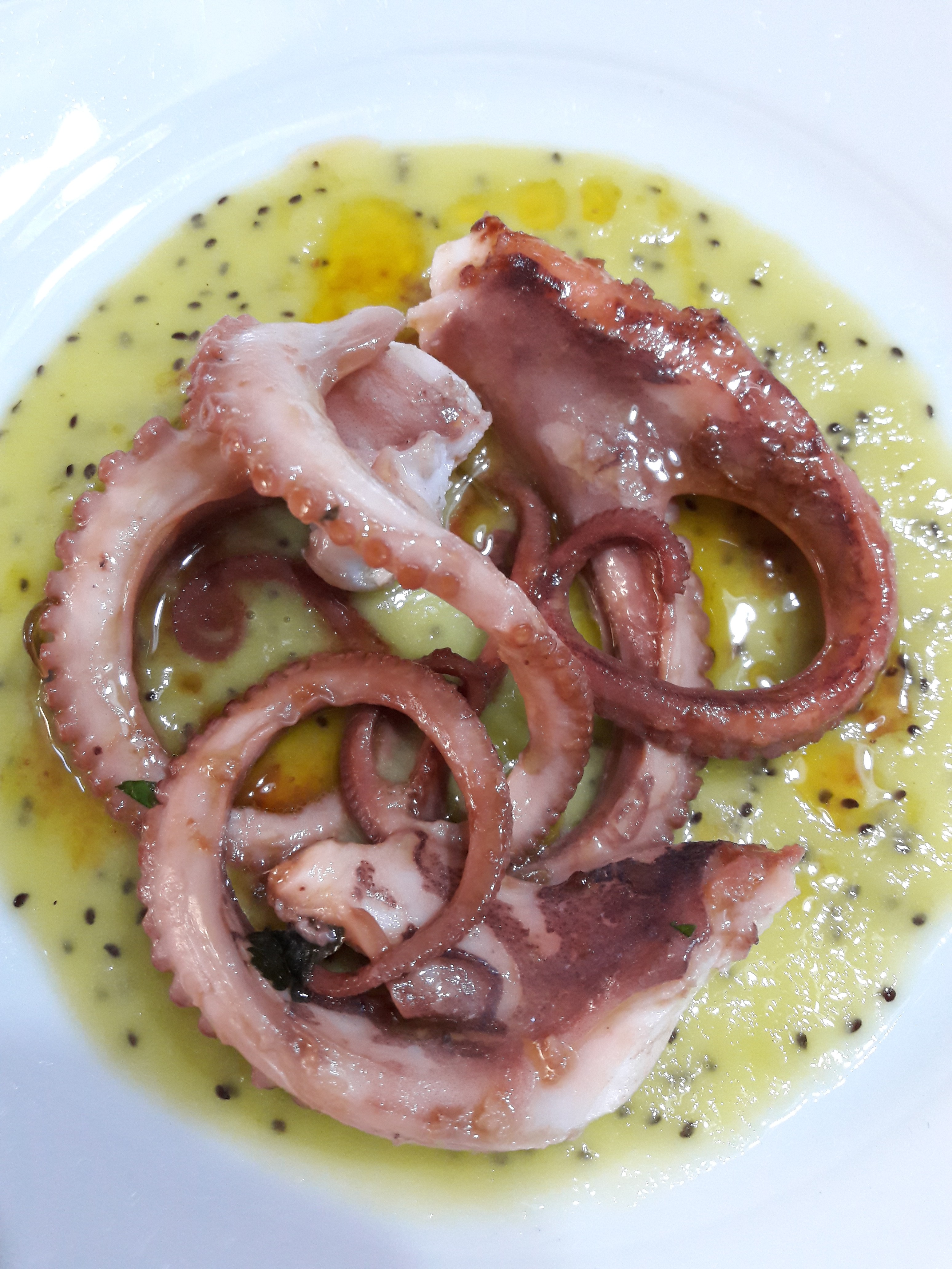 Non è stato necessario aggiungere acqua, tra quella di pulitura dei polpi, cottura alternata con coperchio e senza,non ho aggiunto ulteriore acqua.