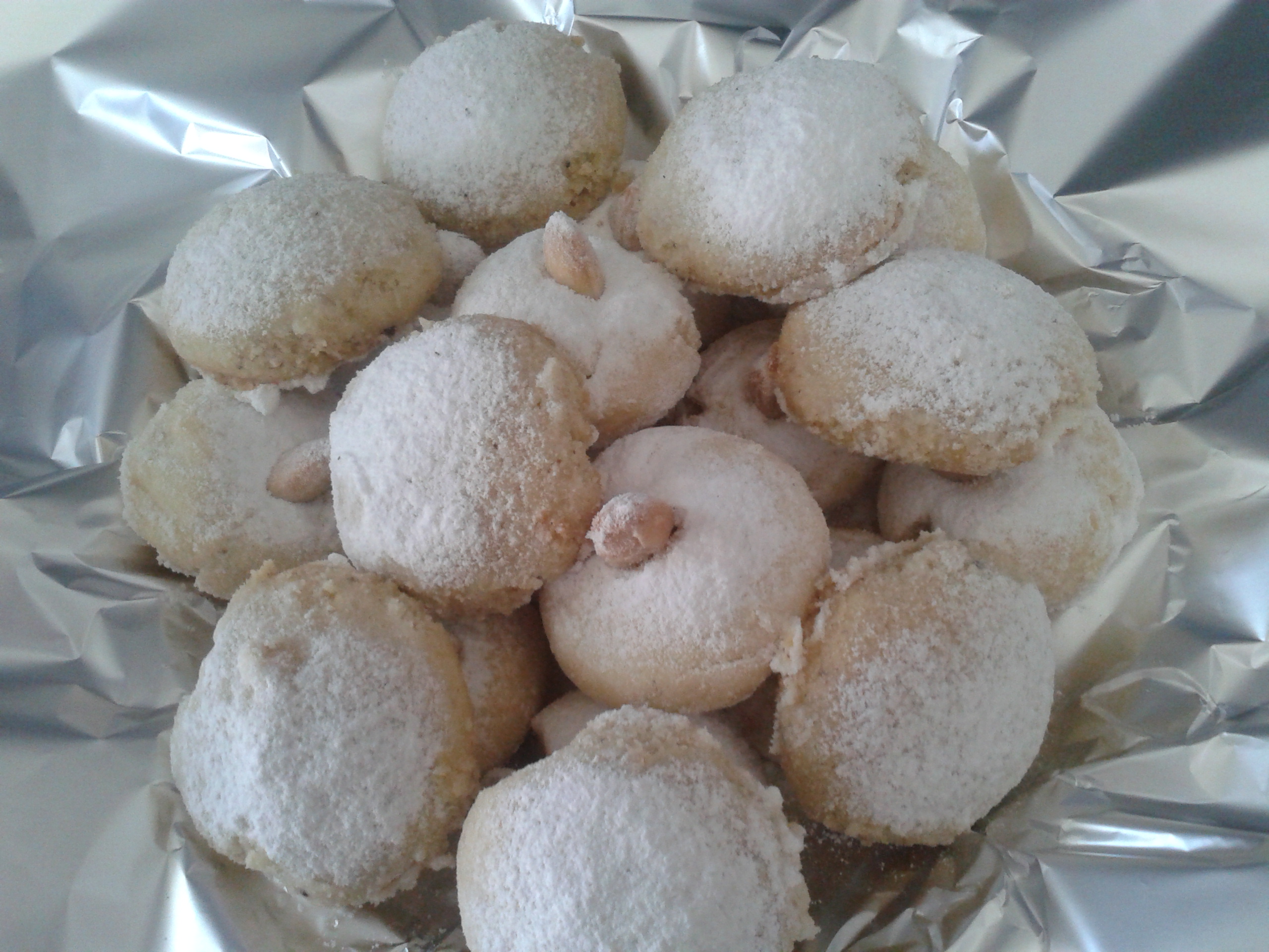 La ricetta l'ho presa dal blog "La ciliegina sulla torta"; li faccio spessissimo perchè sono molto buoni: somigliano ai ghoriba che peraltro vedete nella foto (sono quelli con la mandorla).