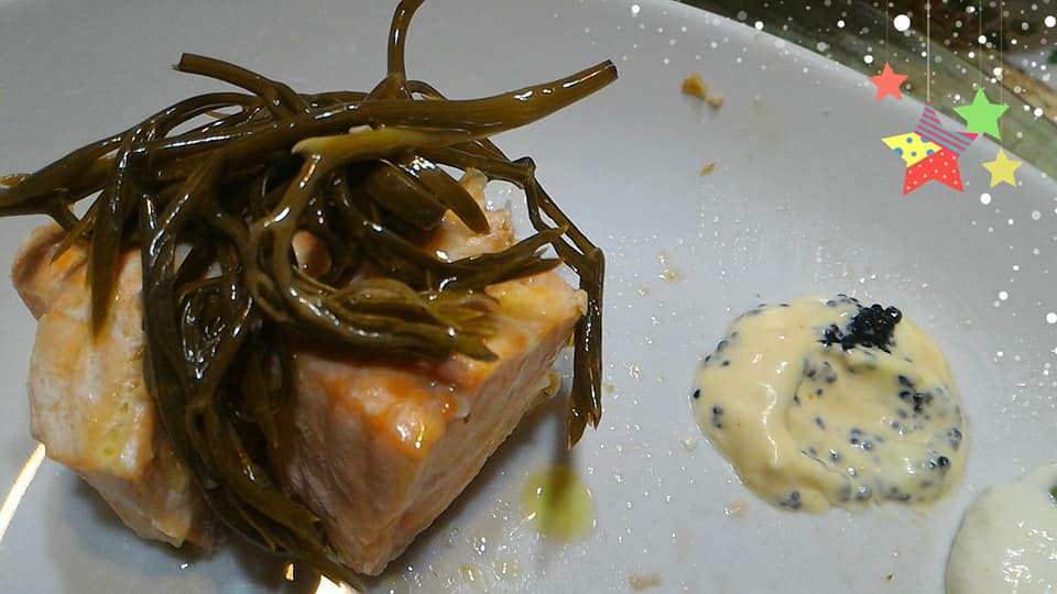 Gli asparagi di mare ci sono arrivati da un'azienda anconetana. In questo caso erano sott'olio ma ottimi lo stesso. Se avete occasione di trovarli freschi provateli sul salmone.