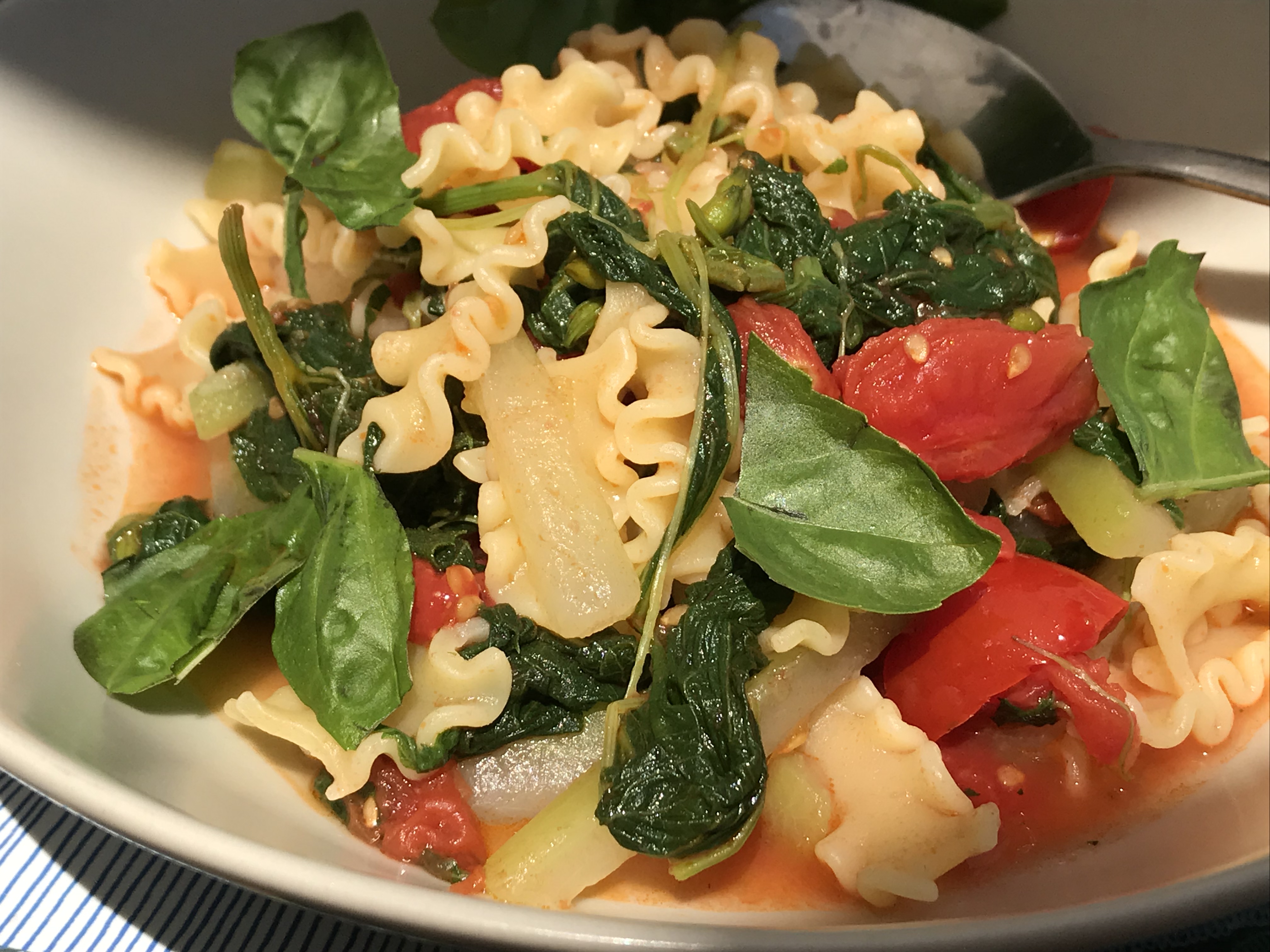 Alla fine si aggiunge un mazzetto (siate generosi) di basilico spezzettato.